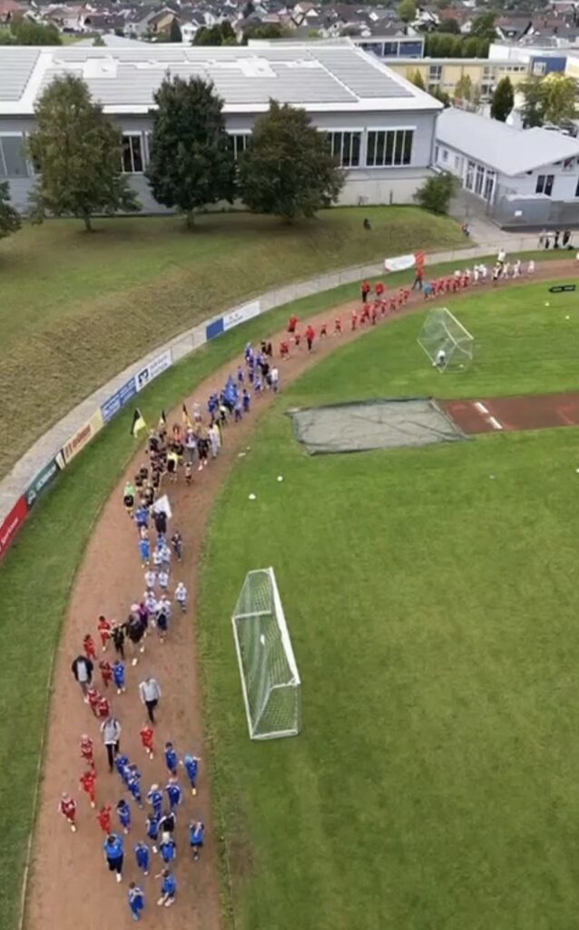 Ein weiterer Höhepunkt in unserem Jubiläumsjahr war der F-Jugend-Tag am 21. September 2025. Der Fußballkreis Bruchsal richtet jährlich ein Fußballfest für die sieben- bis acht-jährigen Fußballerinnen und Fußballer aus, und in diesem Jahr fand das Treffen auf unserem Sportgelände in Kronau statt. 85 Fußballvereine kamen mit ihren jungen Mannschaften nach Kronau und mit den ca. 850 teilnehmenden Kindern kamen Eltern, Großeltern und Geschwister als Begleitung mit. Das Maskottchen des Badischen Fußballverbands „Badi“ war natürlich auch dabei.